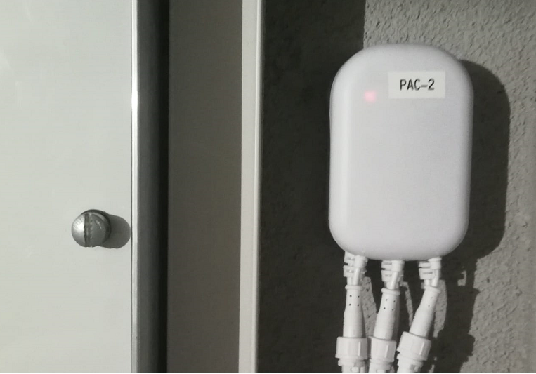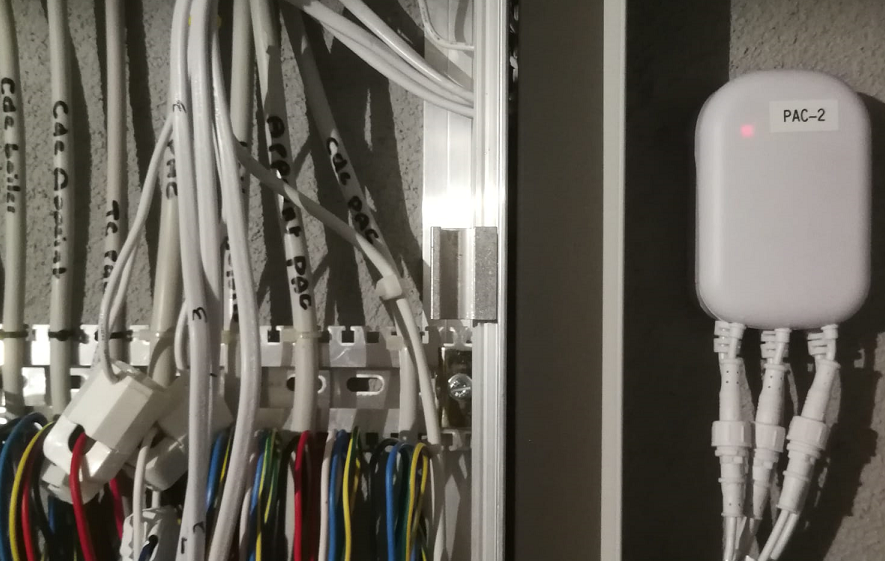 Capteur qui mesure l'énergie électrique sur les trois phases. Le tableau électrique est fermé.